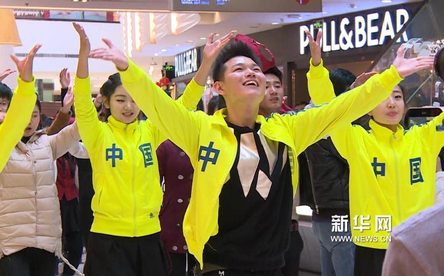 1月17日下午三时,在山东济南经四路某广场前出现了群火热的快闪舞者,吸引了众人驻足观看。(宋玮摄)