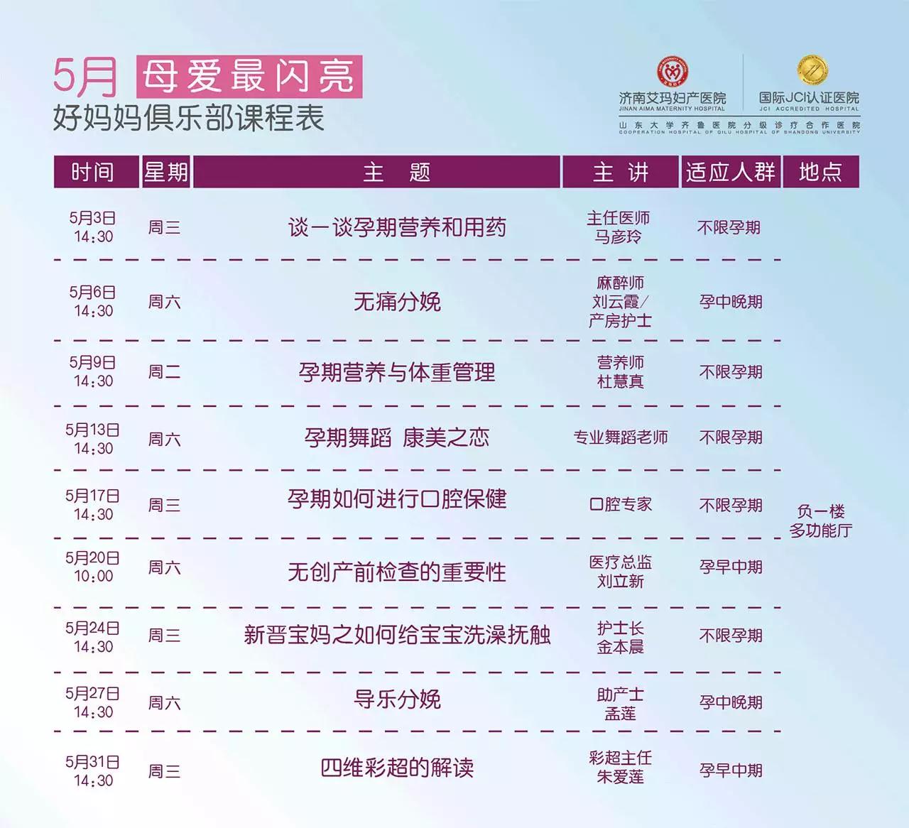 活动地点:济南艾玛妇产医院负楼多功能厅