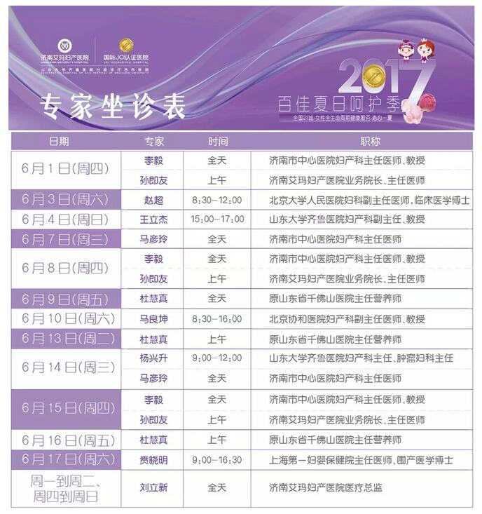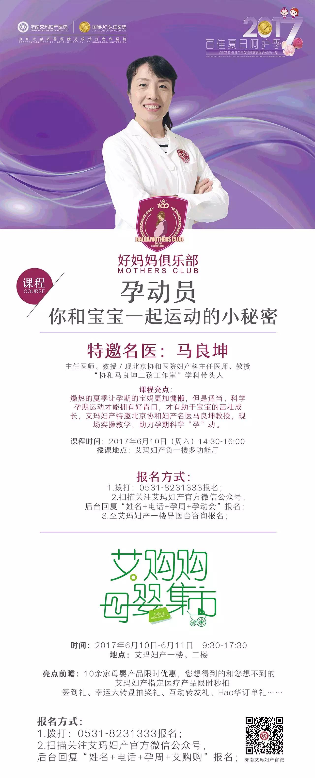 6月10日下午14点30,北京协和医院妇产科副主任医师马良坤教授,将在济南艾玛妇产医院开设专题讲座,就宝妈关心的孕期问题进行解疑答问,亲们不用去北京也能享受到北京专家的权威指导。